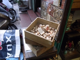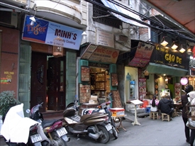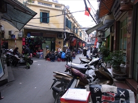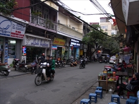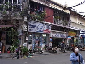 フックロイの前の通りであるターヒエン通り。ハノイの姉妹都市フランスのトゥ⁻ルズ市と共同で2011年に壁をクリーム色、窓枠を緑にして昔の姿に戻している。 |