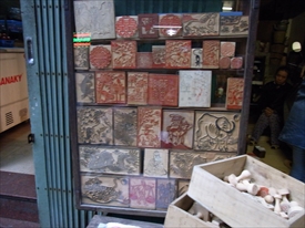 旧市街。野菜、肉など路上市場となっているザークー通り。 |