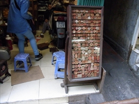 ここにはホアンキエム湖で捉えられた2mぐらいの亀のはく製がある |