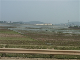 水田の向こうは学校 |