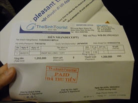 前日に受け取ったチケット625千ドン/人 |