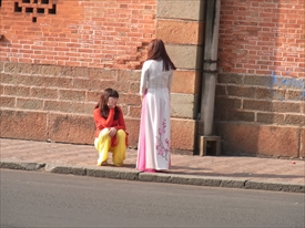 アオザイ姿の女性。写真のモデル? |