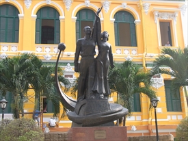 サイゴン市制300年の記念事業として建てられた封建的だった郵便制度に抵抗した勇士の銅像 |