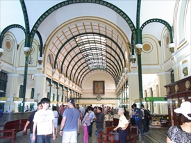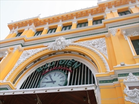 この建物は1886年に建設を開始、1891年に当時のフランス領インドシナの郵便・電信施設として完成。鉄骨設計はギュスターヴ・エッフェルが手がけた |