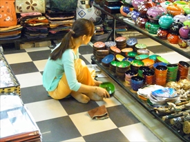 座って商品の整理 |