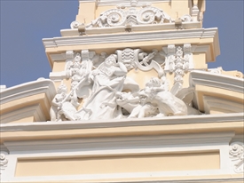 フランス統治時代に市役所として建てられたコロニアル(植民地)建築。当時のフランスで流行していた古代ローマを復古させたような力強く、豪華な彫刻、彫像の装飾が特徴でアンピール(帝政)様式とも言われる。竣工1908年、起工 1898年、設計Gardes(仏)、仕上げBonnet(仏)、施工 Lailhacar