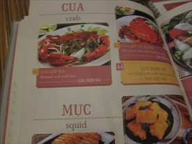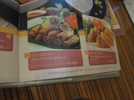 Hoang Yenで夕食。最初間違って食べ放題の店の方に入ってしまった。 |
