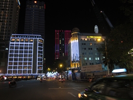 オペラハウスからドンコイ通りの西側を見る。左奥の高い建物はシェラトン |