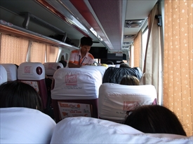 出発するとおしぼりと水のサービス |