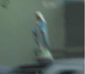 ダッシュボードに事故除けのマリア様。大仏や布袋さんは良く見たがマリア様は初めて |