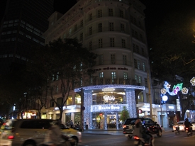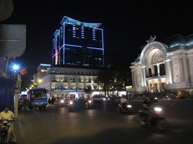 左の白い建物はContinental Hotel Ho chi minh City。右はオペラハウス。中奥はVincom center |
