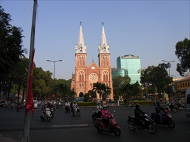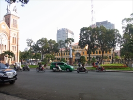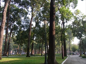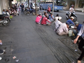 日本で言えば銀座通りであるドンコイ通りの朝。皆さん朝食中。 |