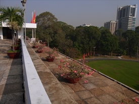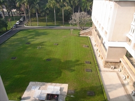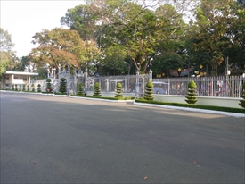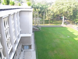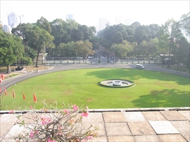 上の写真の右側の統一会堂につながる大通り。公園のような緑地帯になっている |
