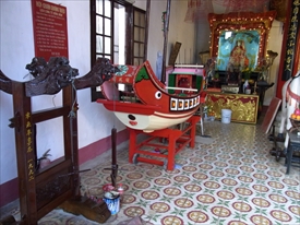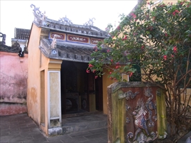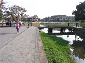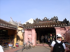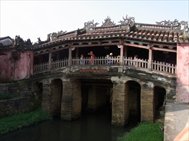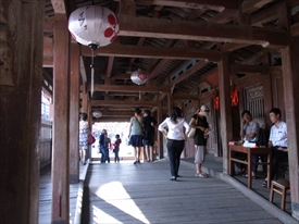 ベトナム語ではChùa Cầu(橋寺)とも呼ばれ、橋のなかに祠が設けられている |