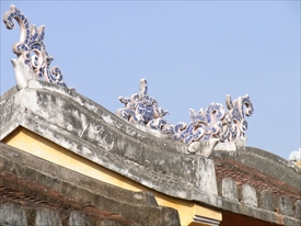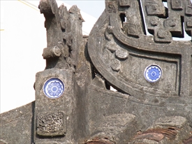 上の屋根の真ん中。陶磁器が埋め込まれている |