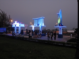 モニュメント。右はホーチミンの高層ビル、中はシンガポールのホテル、左は? |