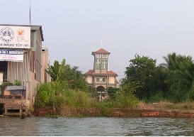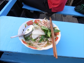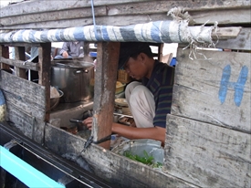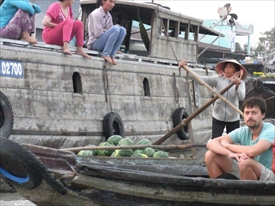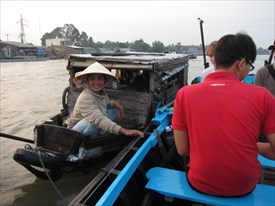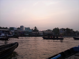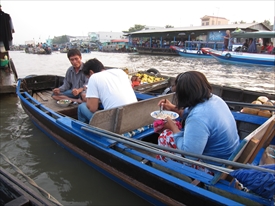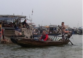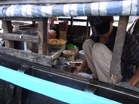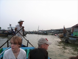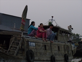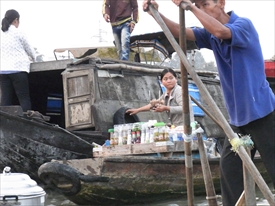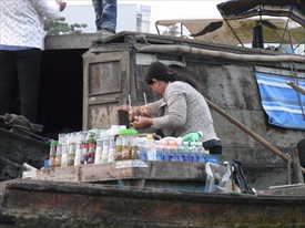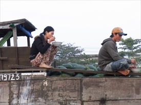 手前はバインミー船。観光用の船では屋根で写真を撮っている |