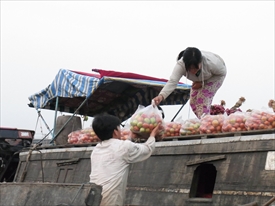 かぼちゃ。寄っている小船は飲み物屋。 |
