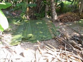 バナナの葉で作った屋根の部材 |
