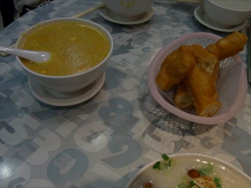 ![]() 右は油條(揚げパン) |