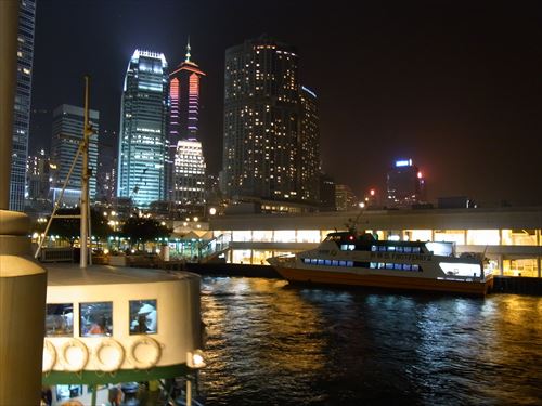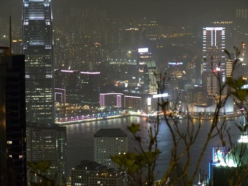 北方向。真ん中は九龍半島側のザ・ペニンシュラ香港 |