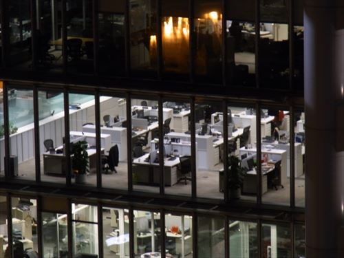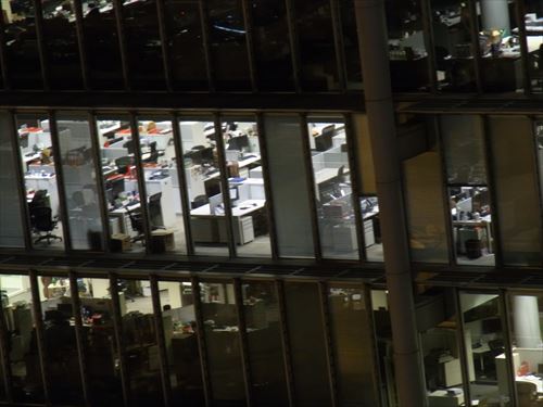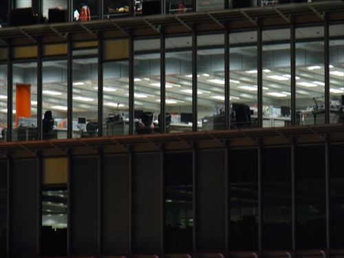 ![]() 2つ前の写真の中下右。上のフロアは1つの机に3台モニターがあるのでたぶんディーリングルーム。 下左はミーティングルーム |