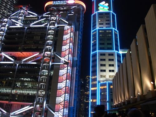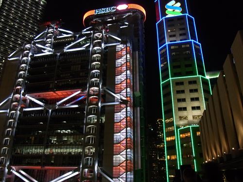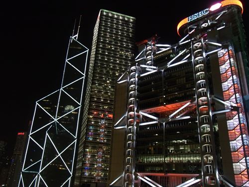 ![]() 南側 左から中国銀行2棟、香港上海銀行 |