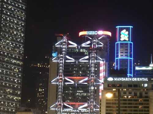 ![]() 真ん中のクロスになっている照明は中国銀行のビル |