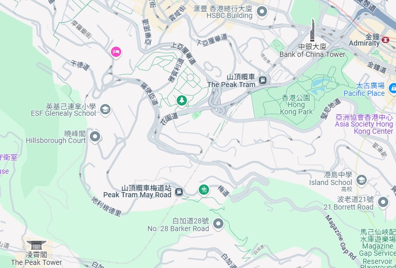 2日目の夜 19:15 銅羅湾(Causeway Bay)→地下鉄→中環(Central) 徒歩(10分)でピークトラムの乗り場へ。