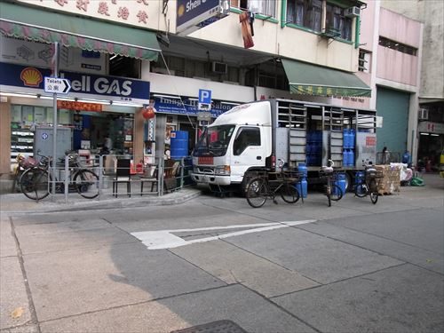 ![]() 西貢街と炮台街(battery street)の交差点にあるガス小売店 |