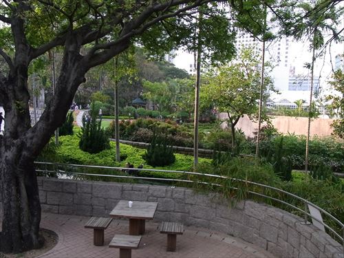 ![]() 北の入口方向を振り返る。奥の左の建物が香港カブスカウト本部 |