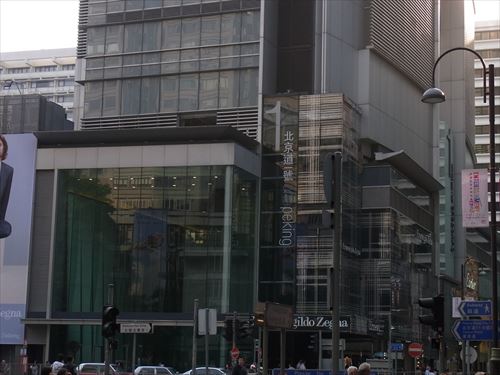 ![]() 九龍公園道と北京道の交差点. 中央の建物は北京道1號(One Pekin) 以前このビルの場所には九龍街市があったが、再開発のため北京道(Peking Road)に接して高さ160.0m、地上30階建ての超高層ビルが建てられた。 建物は帆船をイメージしたデザインで、2000年に建設が始まり2004年に完成。 最上部にソーラーパネルを設置し、香港の商業及び業務施設としては初めて太陽光発電のできる建物となっている |