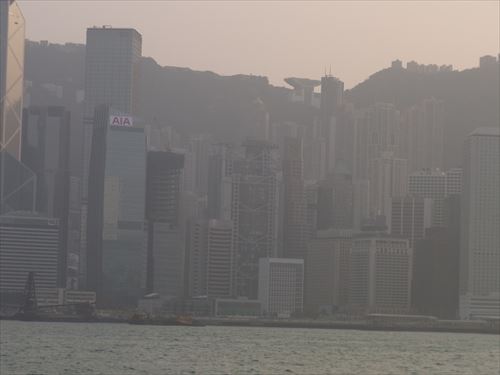 ![]() 香港島の東、銅鑼湾(causeway bay)方向 銅鑼湾は香港の商業の中心地。クレーン船の右の緑はビクトリア パーク。 |