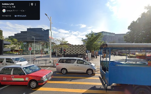 ![]() 彌敦道(ネイザンロード)を南に進み、東西の梳士巴利道(Salisbury Road)を西へ。門は梳士巴利花園(Salisbury Garden) 17:20ごろ |