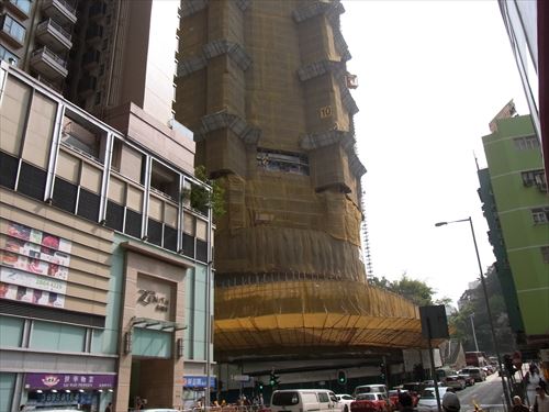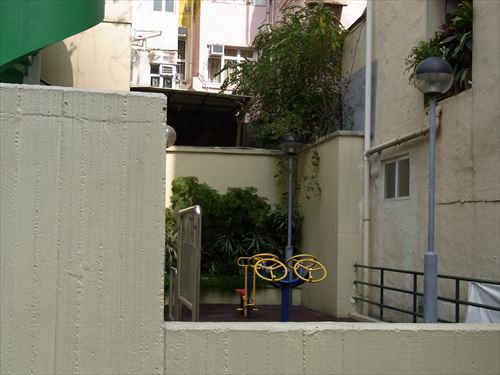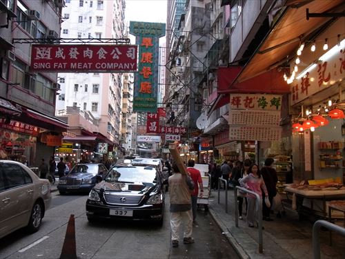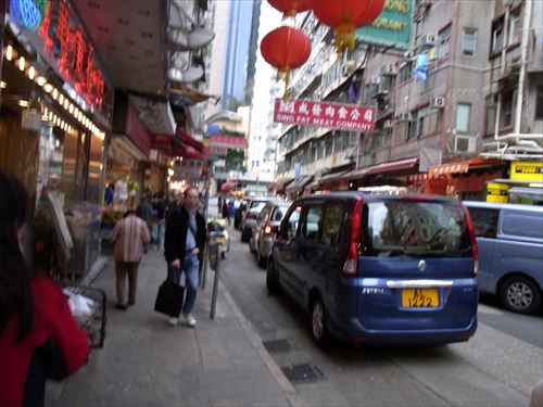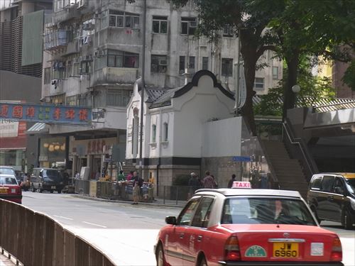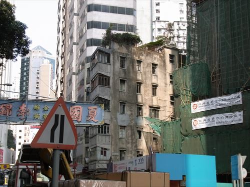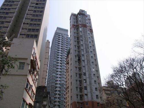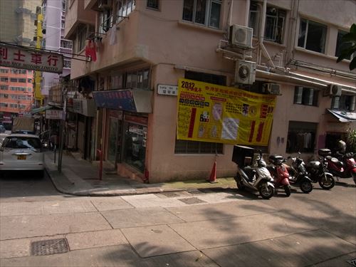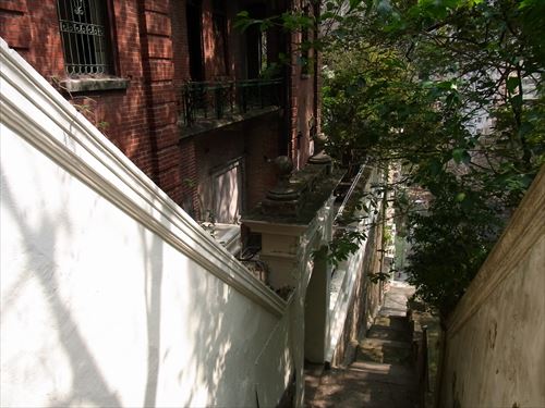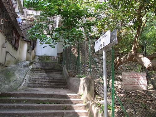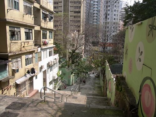 ![]() 坂道の途中から南方向。正面の建物は東昇楼(tung Shing Building)でQueens load沿いにある |