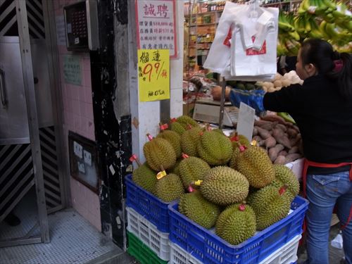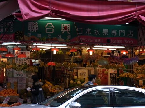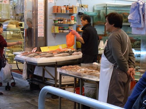![]() Wan Chai Market 灣仔街市 写真中央の棚にはしょうゆやわさびが並べられている。 |