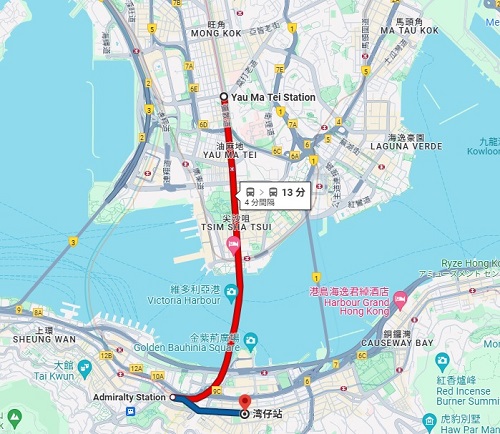 2日目 8:30 ホテル出発→地下鉄 油麻地駅→全灣線Tsuen Wan Line(金鐘Adminiralty駅乗換)港島線(Island Line)→ 灣仔(Wan Chai)