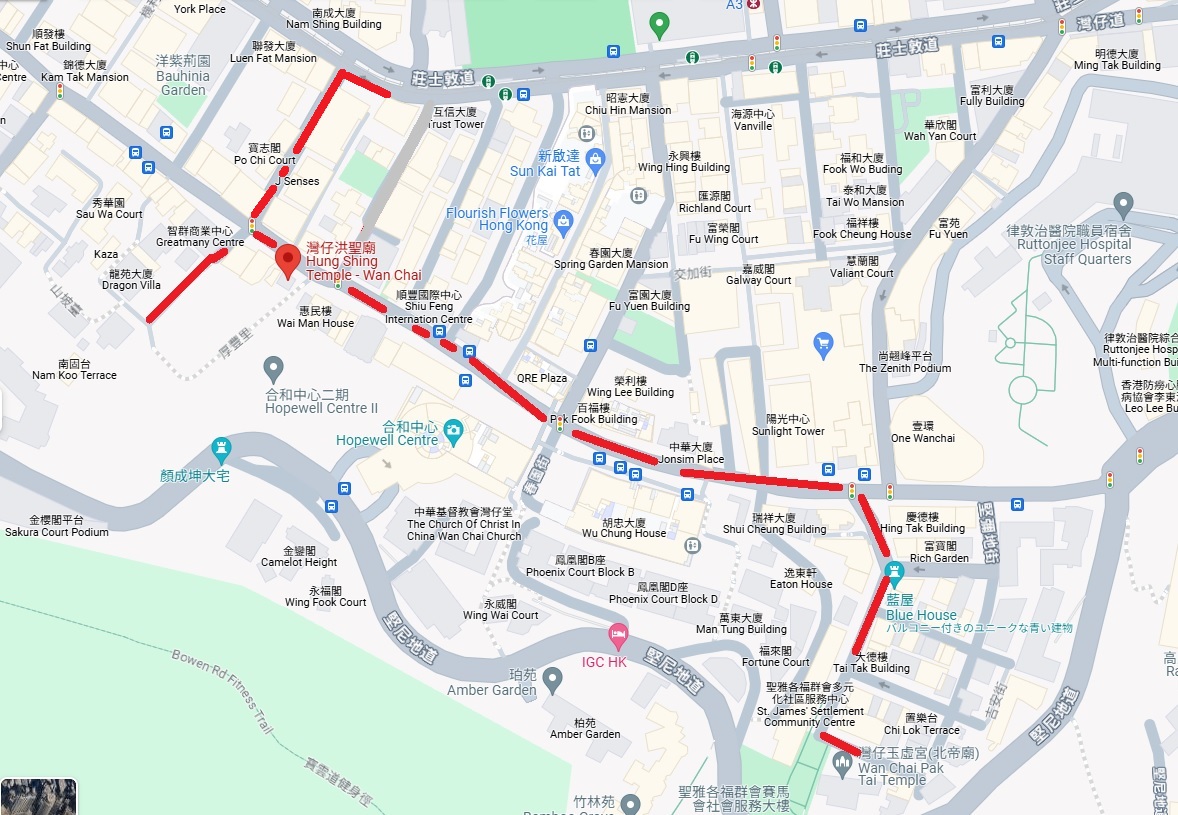 灣仔の歴史的建築を見て歩き 北帝廟→藍屋→旧灣仔郵便局(環境資源中心)→交加街→洪聖廟→南固臺→ザ・ボウン