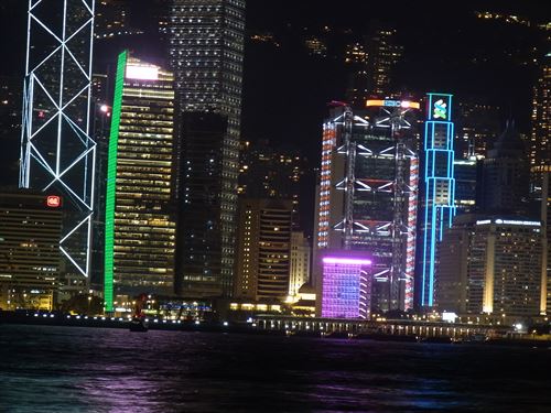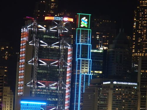 左からBank of Ameria Tower(美国銀行中心) Hutchison House(和記大廈) Bank of China Tower(中銀大廈) AIA Central(友邦金融中心) Cheung Kong Center(長江集団中心) HSBC(香港上海銀行) City Hall(赤い照明のビル) Standard Chartered Bank of Building(渣打銀行HSBCの右隣) Mandarin Oriental(屋上にサインあり) Jardine House(怡和大廈) One\Three Exchange Square(第1-3交易広場 ) 国際金融中心二期 (Two Finance Center) 国際金融中心三期 (Three Finance Center) 国際金融中心一期 (One Finance Center) The Center(中環中心) |