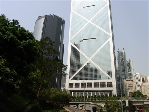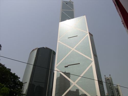 ![]() 中国銀行タワー 中銀大廈 1990 年に開業した 70 階建てのオフィスビル。ビルの構造は、竹の構造からインスパイアされた。 |