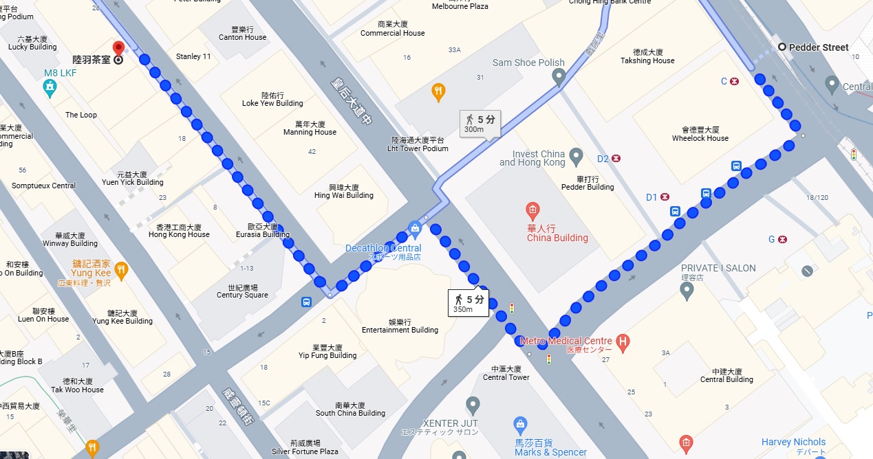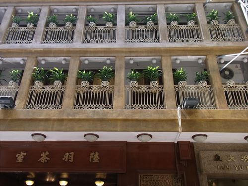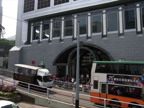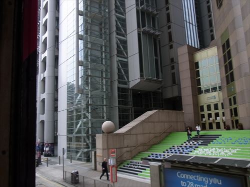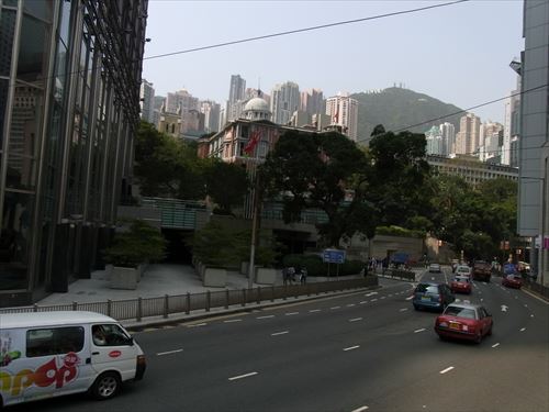 ![]() 左の建物は花園道三番 (Three garden road)。この奥がピークトラムの乗り場 |