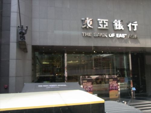 ![]() スタチャから西に80m」ぐらいのところにある東亜銀行。香港最大の華人資本銀行。1918年設立。 |