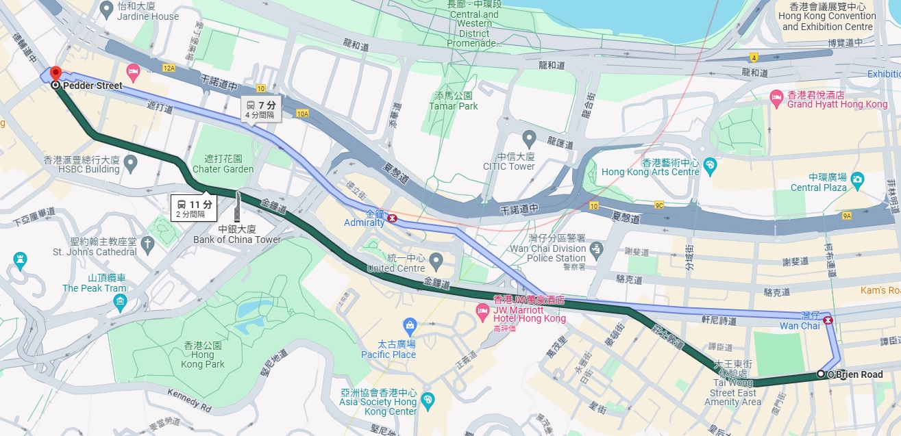 ![]() トラムの停留所はO'Brien Road 柯布連道 THE PAWNから西に180m |