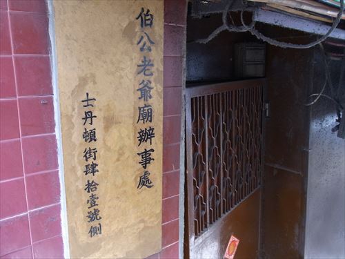 ![]() 士丹頓街(Staounton ST)から卑利街(Peel St)に降りたところの角にある北貢寺(伯公廟 Pak Kung Temple)という小さな寺院。13:27 |