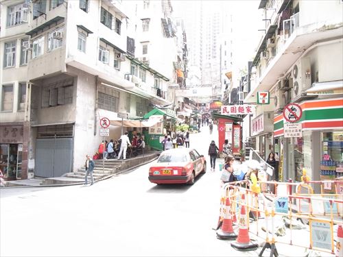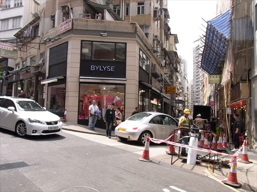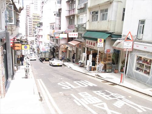 ![]() 伊利近街(Elgin St)を荷李活道(hollywood Rd)まで降りてきて振り返る |