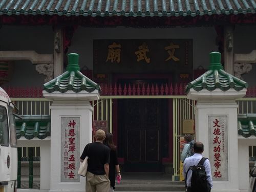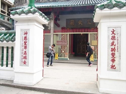 ![]() 文武廟。香港がイギリスにより植民地化された後、1847年に中国人の盧阿貴、譚阿才という実力家によって建てられた、道教のお寺。 文武廟という名前の通り、文学の神である文神「文昌帝君」と三国志の英雄で関羽として知られている武神「関聖帝君」が祀られている。 |