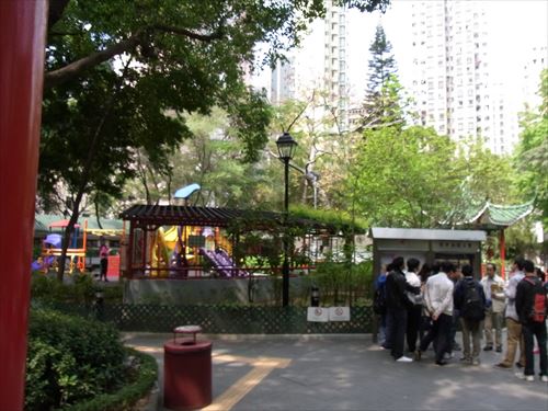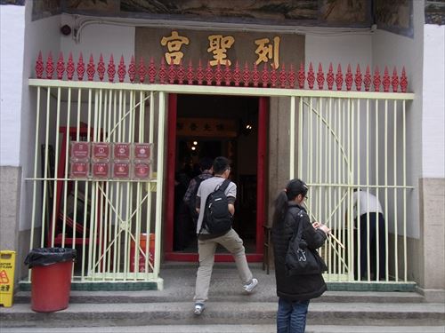 ![]() 正面の門をくぐると、右・中央・左に入り口があり、それぞれに異なる部屋がある。そのうちの1つが文武廟。 文武廟は建設当時から、お寺としてだけではなく、地域の公共の場として、香港住民にとって利用されてきた。 例えば、建設当時は、貧困層の宿として使われたり、病人の介護のためなどにも使われていたことがあった。 1908年には、香港で最古であり、最大であるNPO組織、東華病院グループの管理下に置かれた。 |