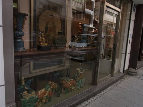 ![]() 荷李活道(hollywood Rd)は、文武廟から西は骨董品街になっている。 |