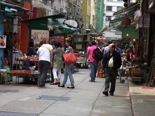 ![]() 摩羅上街自体は200メートルほどの短い通り。下の地図の青いところ 高級なものは荷李活道(hollywood Rd)にあり、ここはリーズナブル。 |