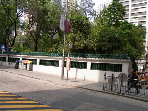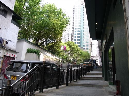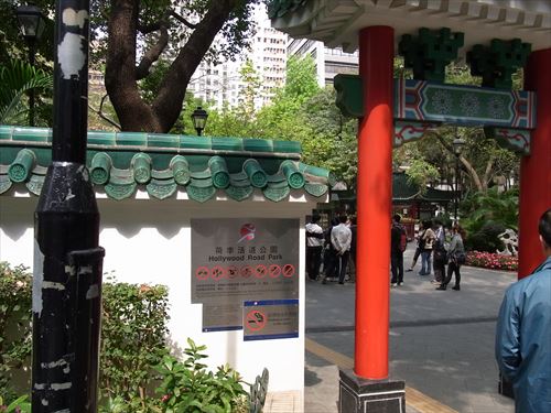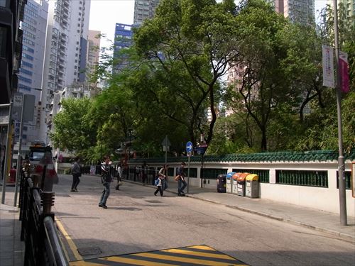 ![]() 荷李活道公園(Hollywood Road Park)を振り返る。写真を撮っているところから荷李活道(hollywood Rd)は終点。T字路で皇后大道西(Queen's Rd W)につながる |
